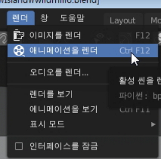 렌더 - 애니메이션을 렌더 메뉴를 선택하시면,