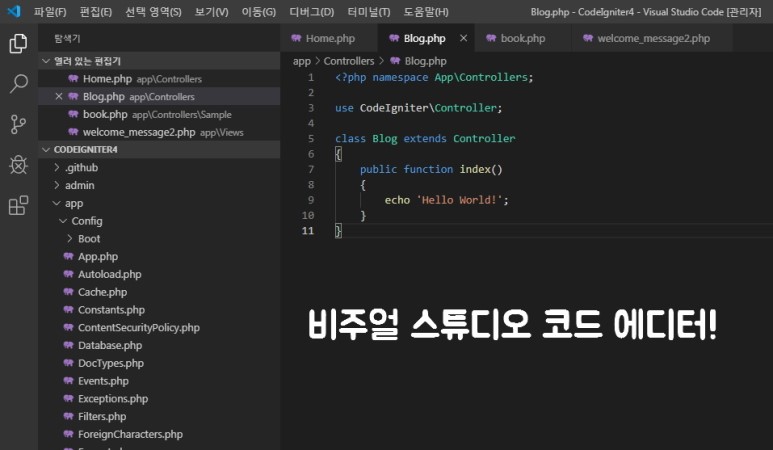 비주얼 스튜디오 코드 에디터를 실행하실 때는