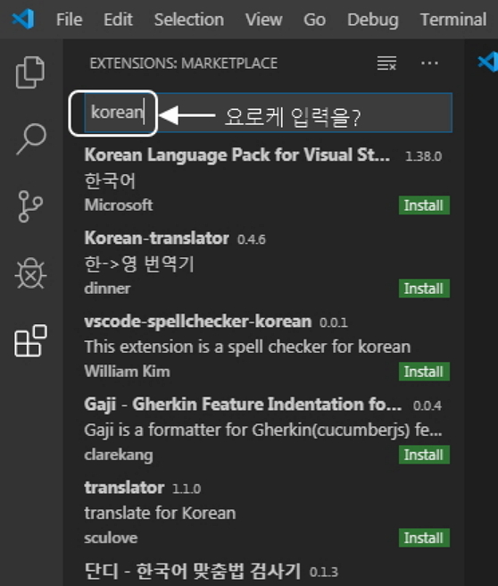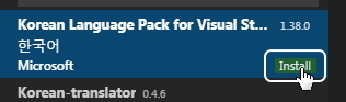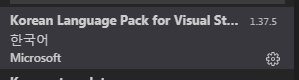 그러면 바로 아래 Korean Lanauage Pack for Visual Studio Code 라고 뜰 겁니다.