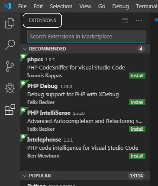 바로 아래 Search Extensions in Marketplace 라고 된 부분을 마우스로 클릭,