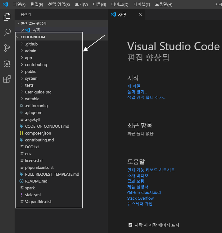 비주얼 스튜디오 코드에디터를 실행하시면 아래와 같은 화면이 나오는데요.