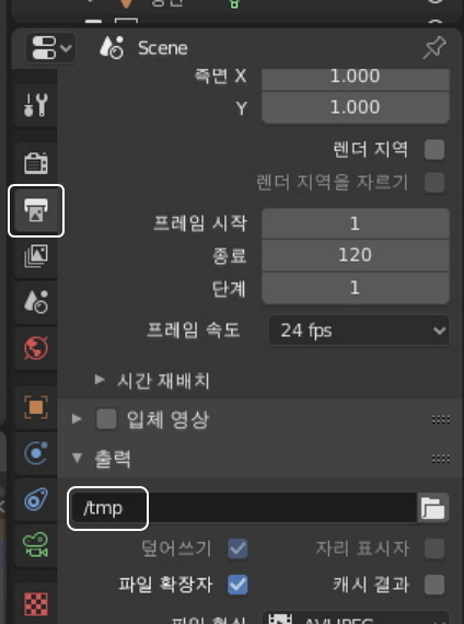 에니메이션을 렌더링하면 영상이 C:\tmp 폴더에 0001-0120.avi 파일로 생겨나는데요.