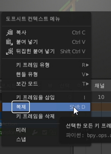 그리고 나서 마우스 우클릭 복제 메뉴를 선택하시거나 단축키 Shift + D 키를 누르신 다음에,