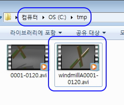 windmill0001-0120.avi 파일이 생겨난 것을 확인하실 수 있습니다.