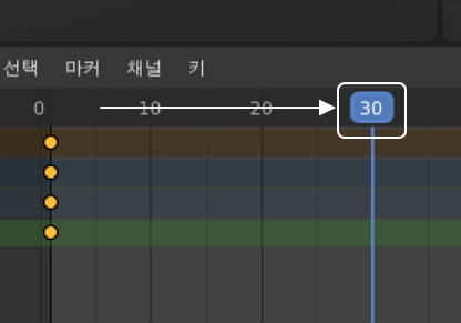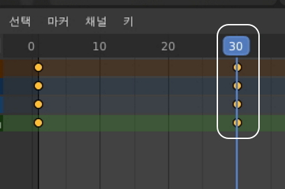 엇, 그러니 도프시트 창에 또 다시 30프레임번째에 키프레임이 생겨났습니다.