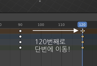 그 상태에서 120번째 프레임으로 이동한 다음 마우스로 클릭하시면,