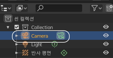 오른쪽 아웃라이더 창에서 Camera 오브젝트를 찾아 클릭해주세요.
