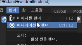 설정을 잡아주신 다음에, 렌더 - 애니메이션을 렌더 메뉴를 선택해주시면 되는데요.