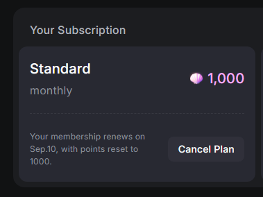 Standard 요금제를 구독하면 1,000 크레딧을 제공합니다.
