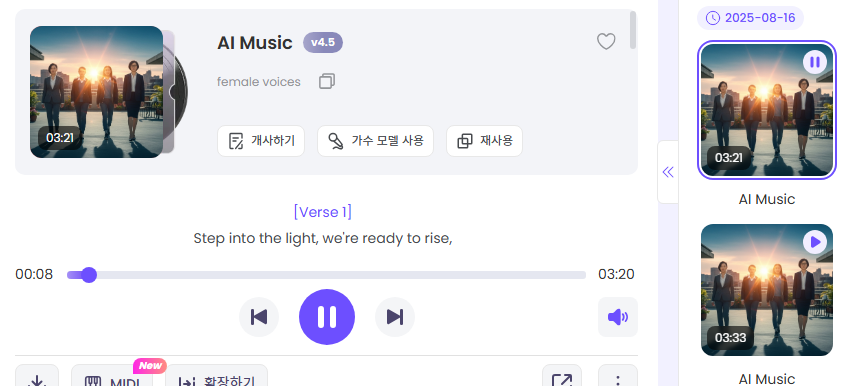 곡의 음악이 생성되는데 영어가사의 완전한 곡을 만들어 줍니다.
