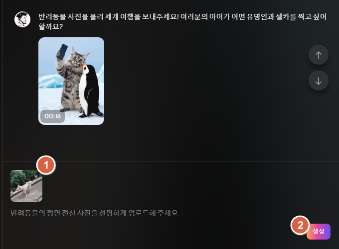 사진을 첨부, 생성 버튼을 눌러 주겠습니다.