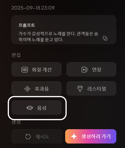 프롬프트는 간단히 'a young human male singer' ( 젋은 남자 가수 ) 를 적어준 다음