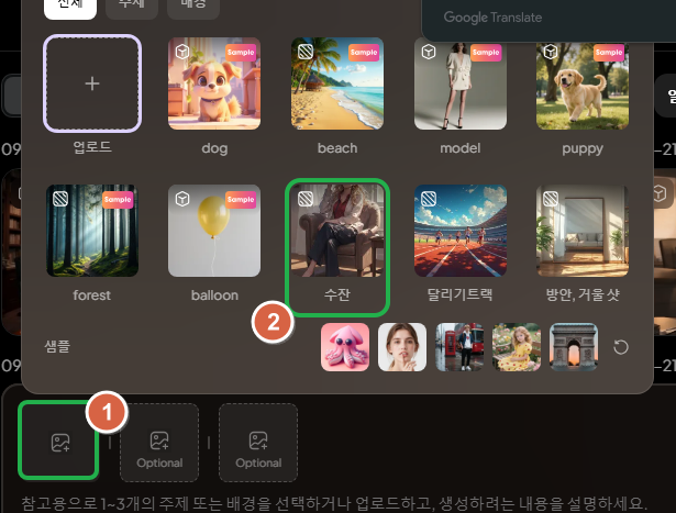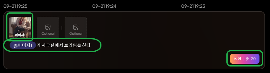 이미지를 첨부하고 프롬프트를 적고, 생성 버튼을 선택하면 되는데요.