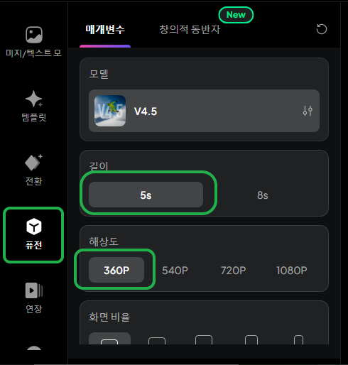 여기서 '연장' 기능을 사용하면 더 긴 영상이 만들어지는데 지난번 다뤄봤으니 통과!